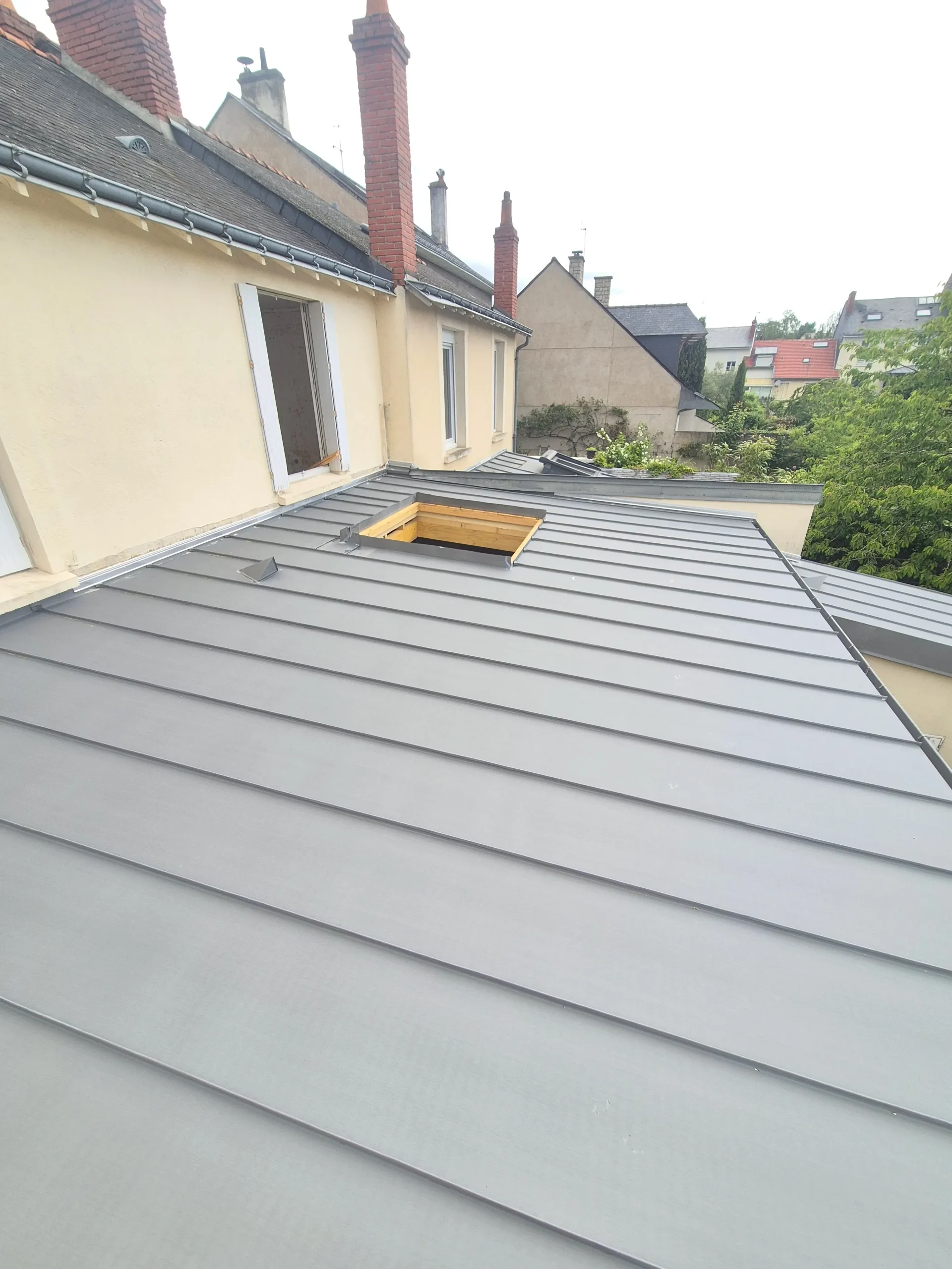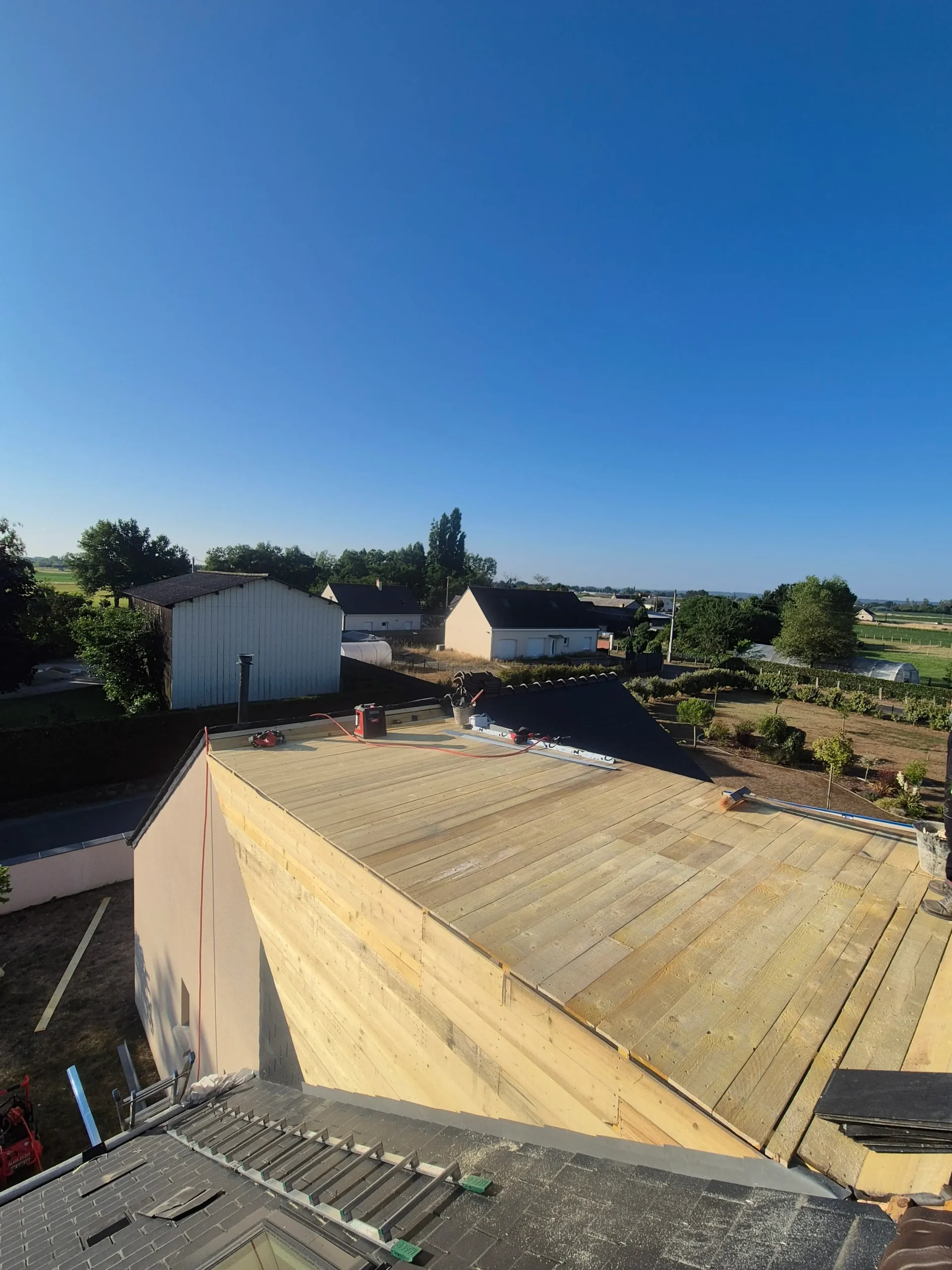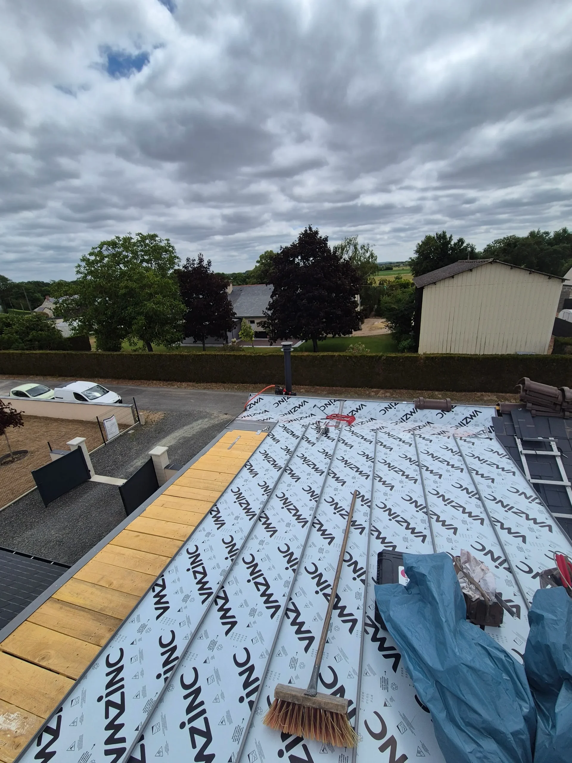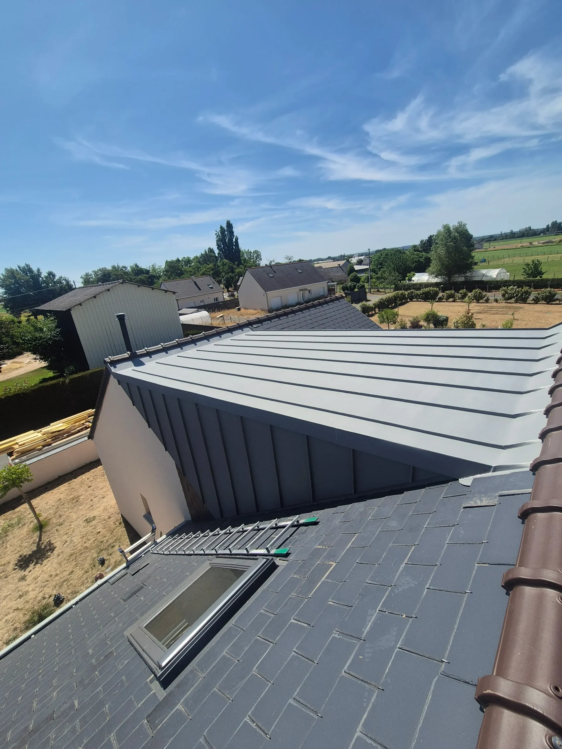 Nous proposons également la création de toitures en zinc, idéales pour une finition moderne, durable et parfaitement étanche. Le zinc offre une grande résistance aux intempéries et s’adapte parfaitement aux architectures contemporaines ou traditionnelles. Pour les projets de toit plat, nous réalisons la pose complète avec les solutions d’étanchéité adaptées, garantissant une évacuation optimale des eaux et un confort thermique renforcé.
